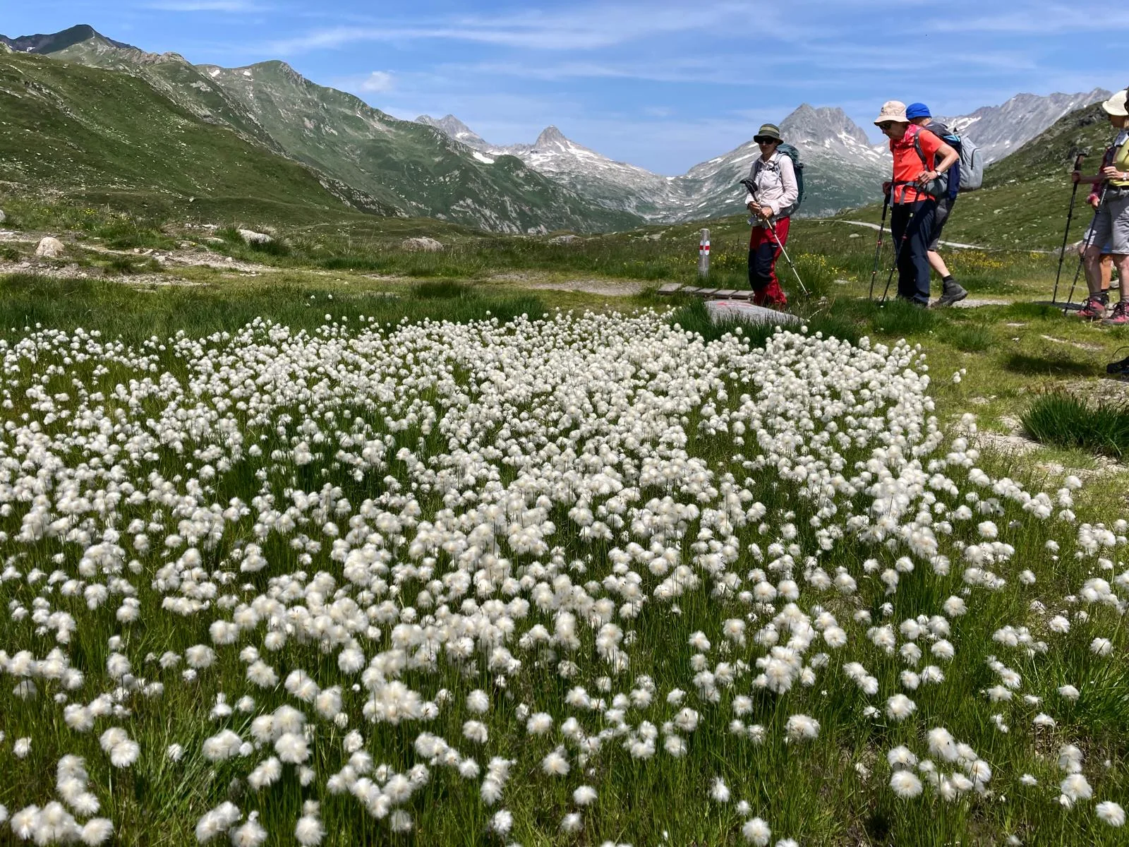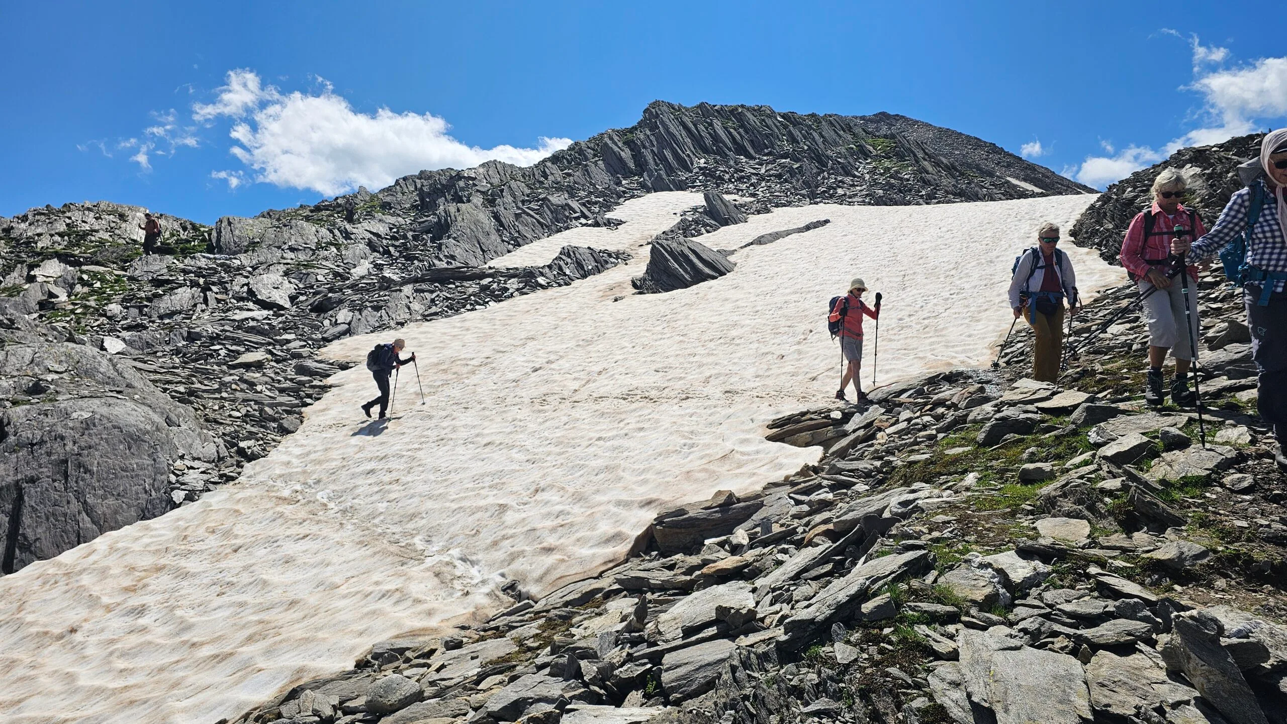 Bei schönstem Wetter starteten wir ab Gotthardpasshöhe unsere erste Wanderung auf dem Vier-Quellenweg Richtung Sellapass auf 2770m. Nach gut 800 Höhenmeter erreichten wir den Pass. Zwischendurch genehmigten wir uns einige Pausen, um die schöne Rundsicht und die Blumenpracht zu geniessen. Die Schneefelder beim Abstieg meisterten wir alle gut. In der Vermigel SAC-Hütte wurden wir von zwei Familien von der Sektion Zofingen verwöhnt. Gut ausgeruht nahmen wir früh morgens unseren Aufstieg zum Maighelspass. Vorher gab es noch für die Badehungrigen ein Morgenbad im Maighelsseeli (ca. 17 Grad). Der Weitblick des sprudelnden Baches Rein da Maighels mit seiner idyllischen, kurvenreichen, talabwärts führenden Linie, begeisterte uns. Der fast 3000m hohe Berggipfel Pizzo Centrale begleitet uns lange. Da wir früh unterwegs waren, genehmigten wir uns noch eine Einkehr in der Maighels SAC-Hütte. Ob Suppe, Wurst oder Kuchen – wir tankten auf. Dann stiegen wir nochmals auf zum Tumasee und bädelten nochmals kurz im etwas kälterem Wasser (ca. 13 Grad). Der abwechslungsreiche Weg durch Steinplatten oder schmalen Pfaden erforderte nochmals unsere volle Konzentration bis zum Bahnhof Oberalppass. Schön war es, alle zufrieden, voller schöner Erinnerung im Rucksack, bereit für die Heimreise.